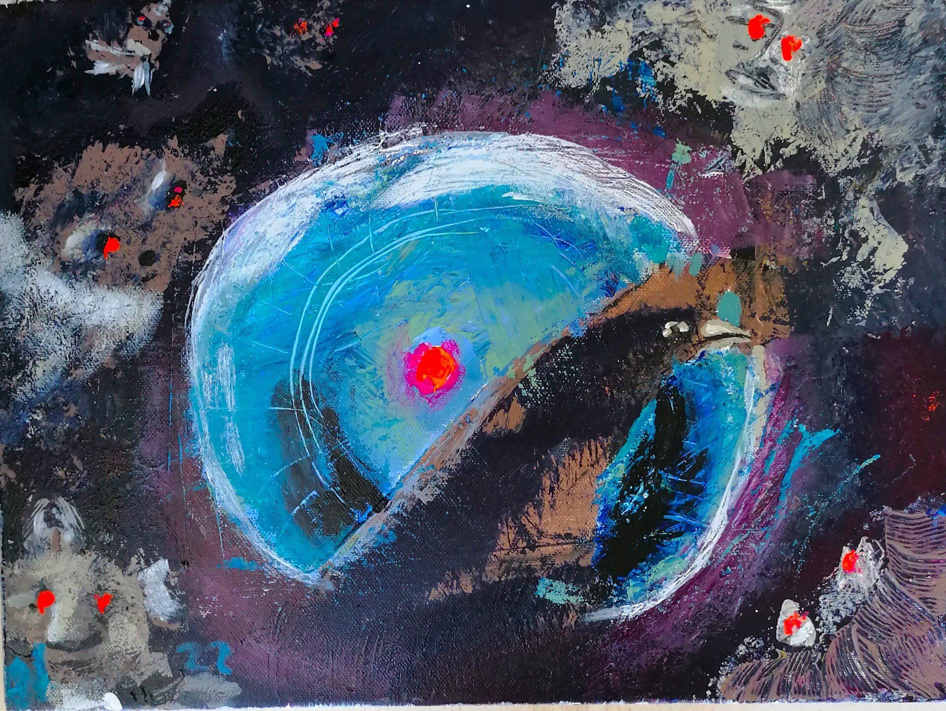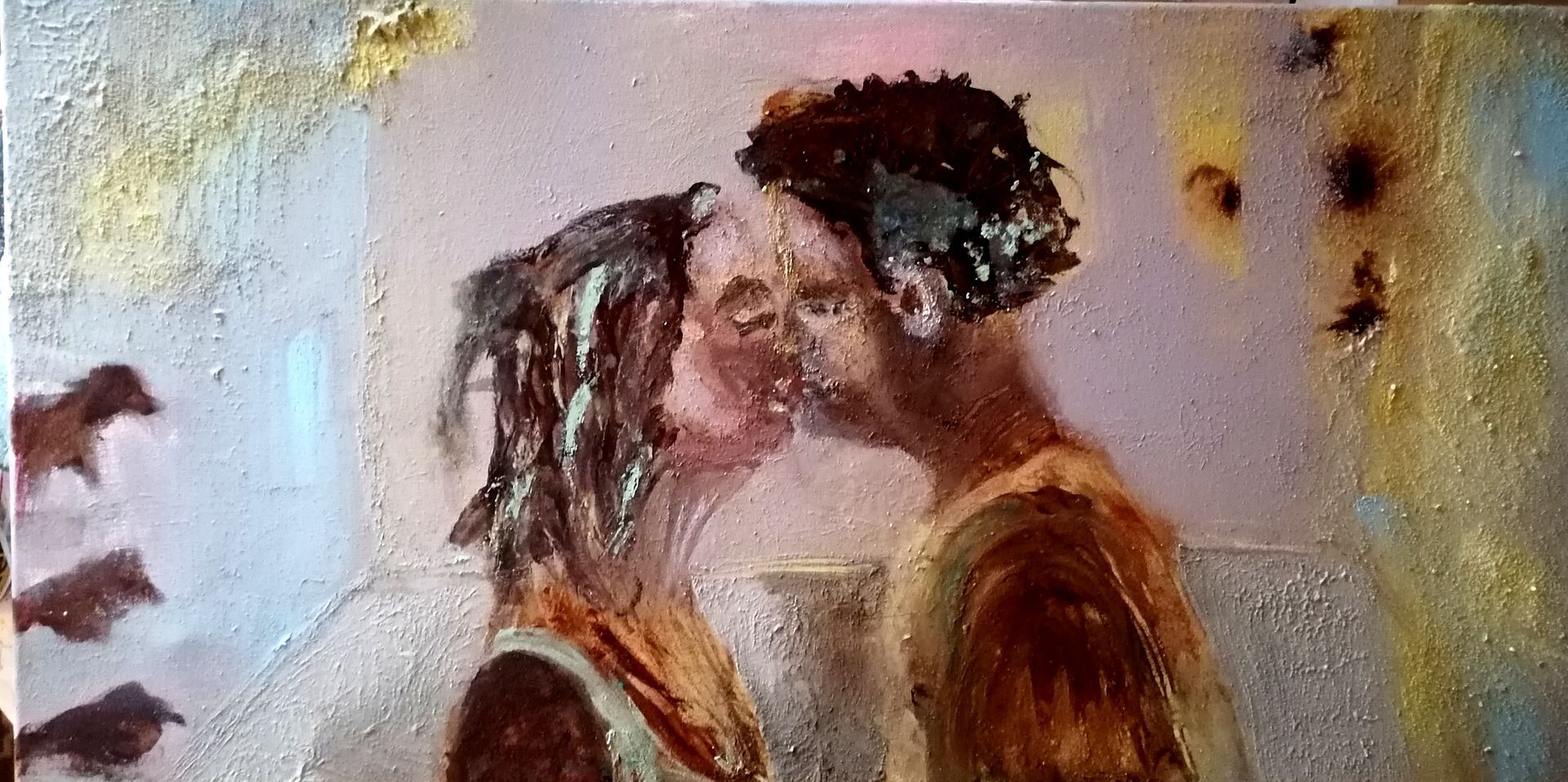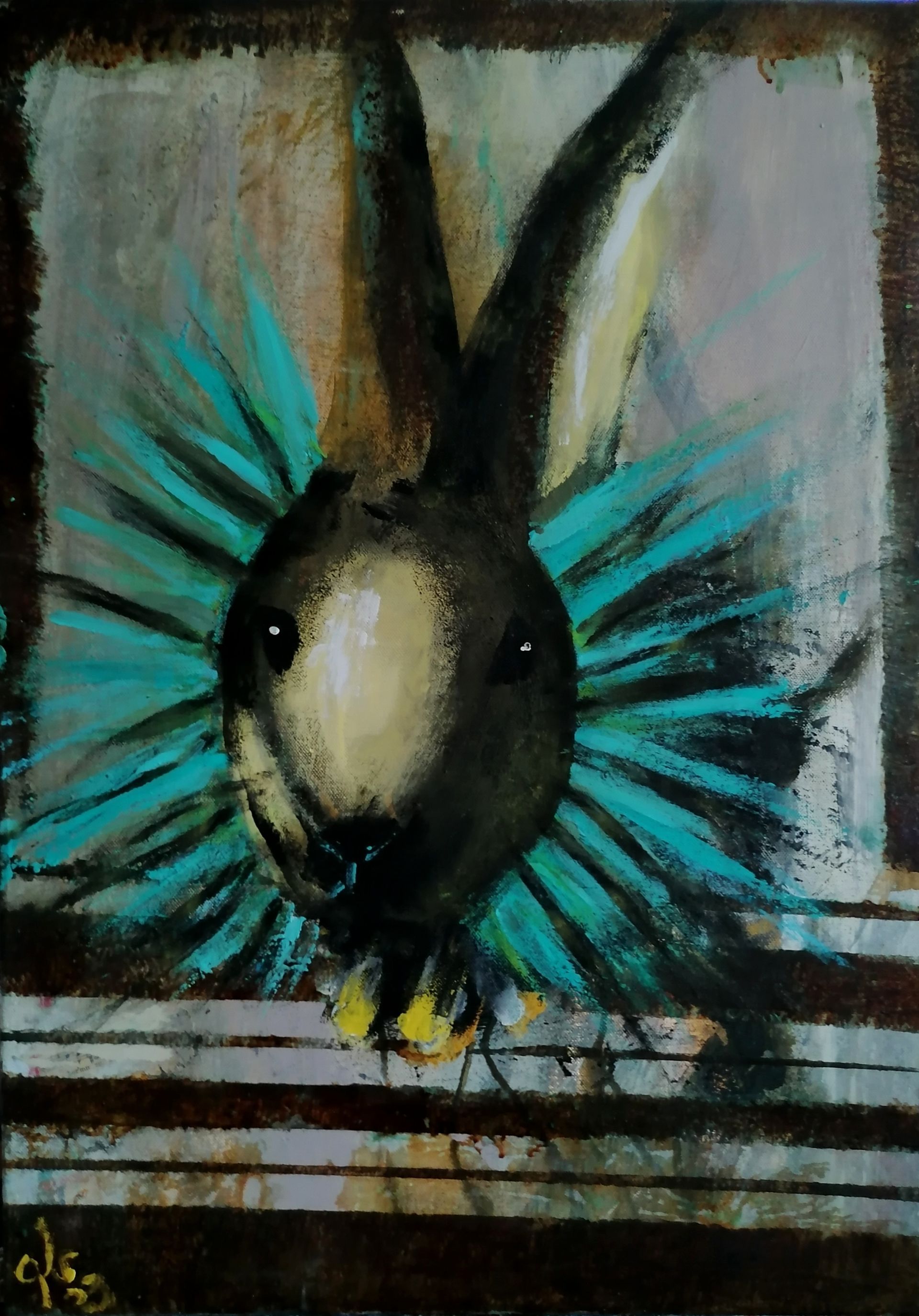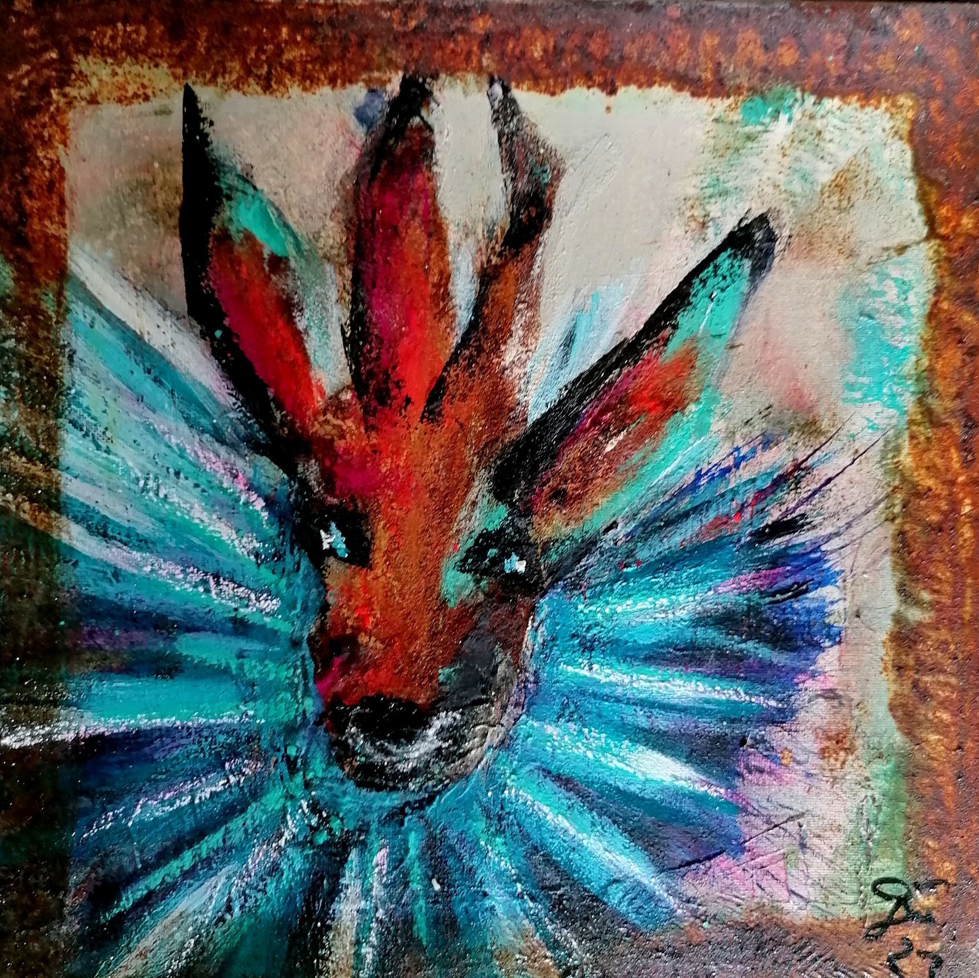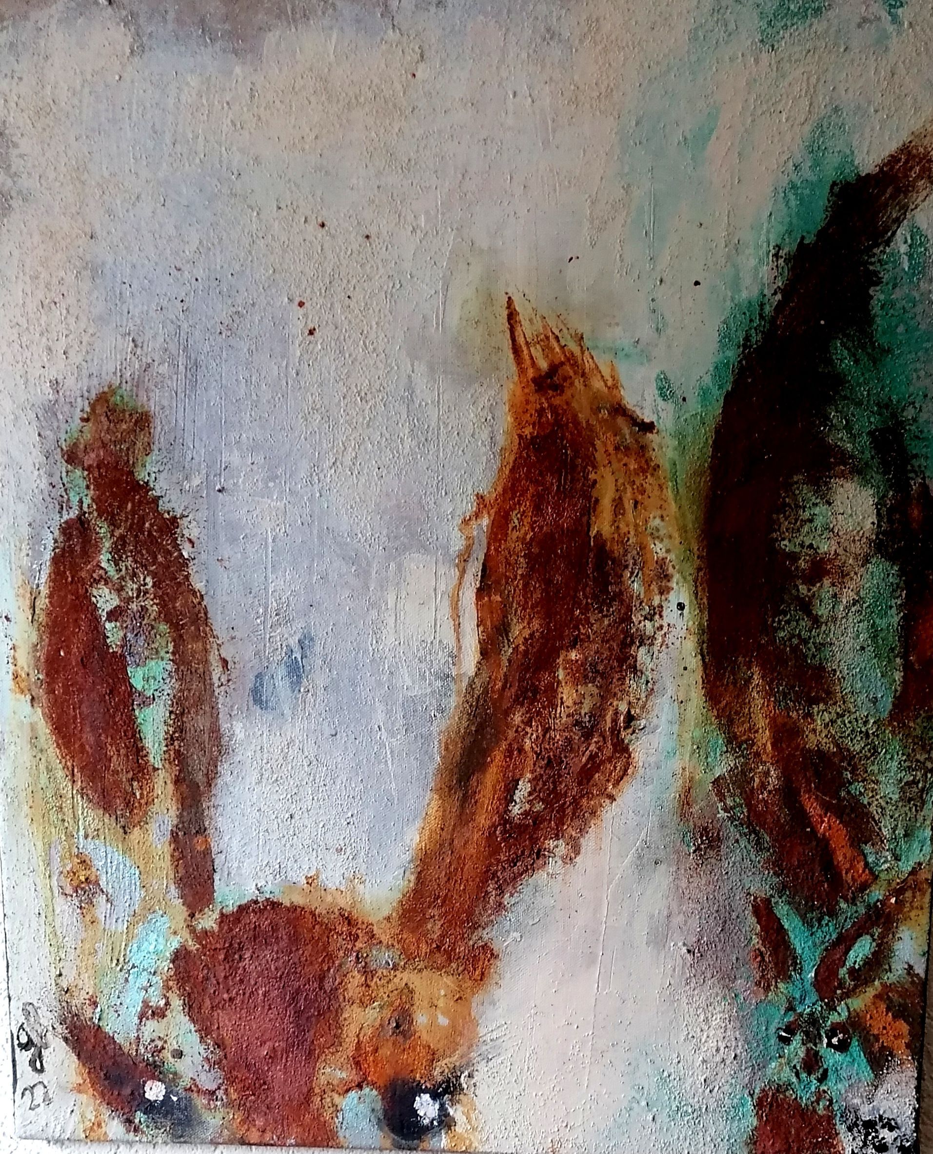 Die Werke hier unten sind auf Leinwand gemalt. Mit Acryl, Rost und Pastellkreiden, 70x50.