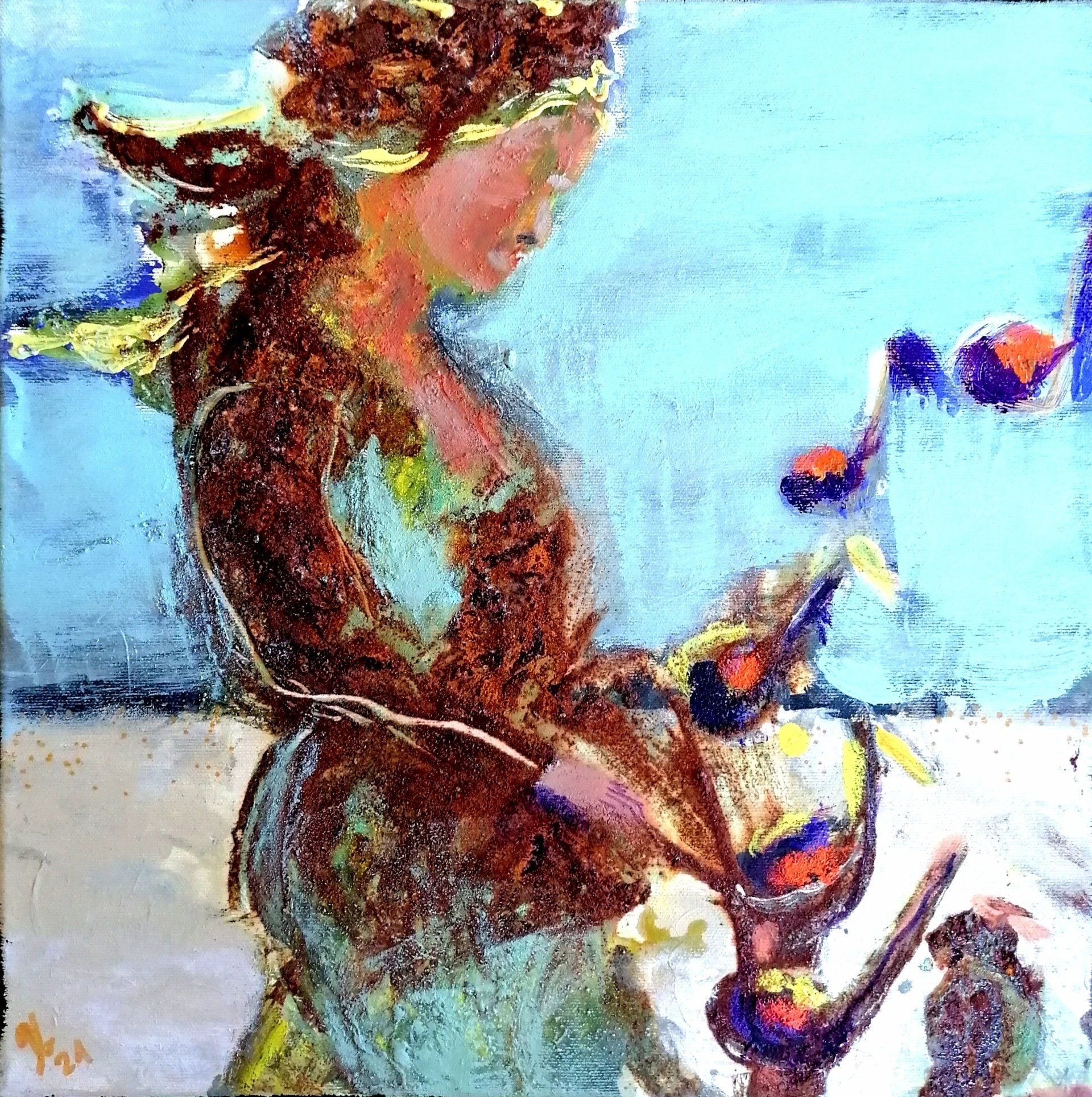 Für Minigruppen (zwei bis vier Personen) biete ich Wochenend Malkurse an. Ich begleite die Schüler*innen eng in ihrem Wirken und bekoche sie vegetarisch.