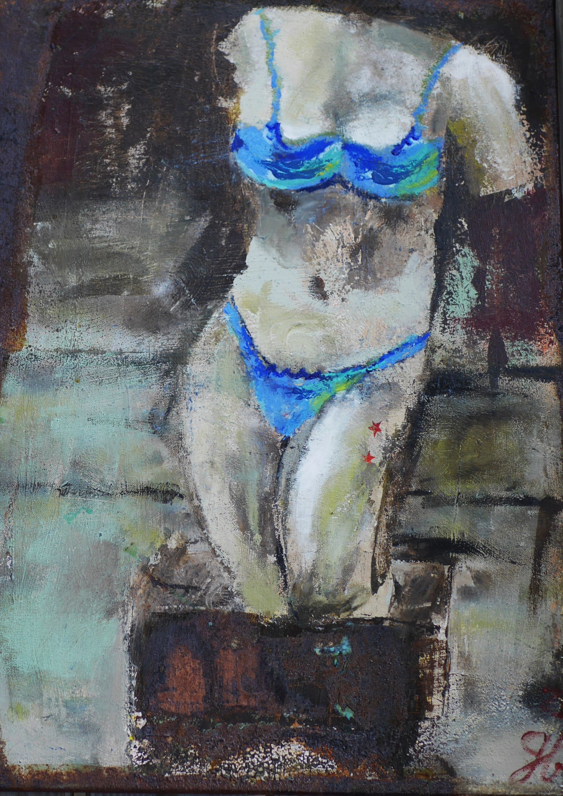 Die Werke hier unten sind auf Leinwand gemalt. Mit Acryl, Rost und Pastellkreiden, 70x50.